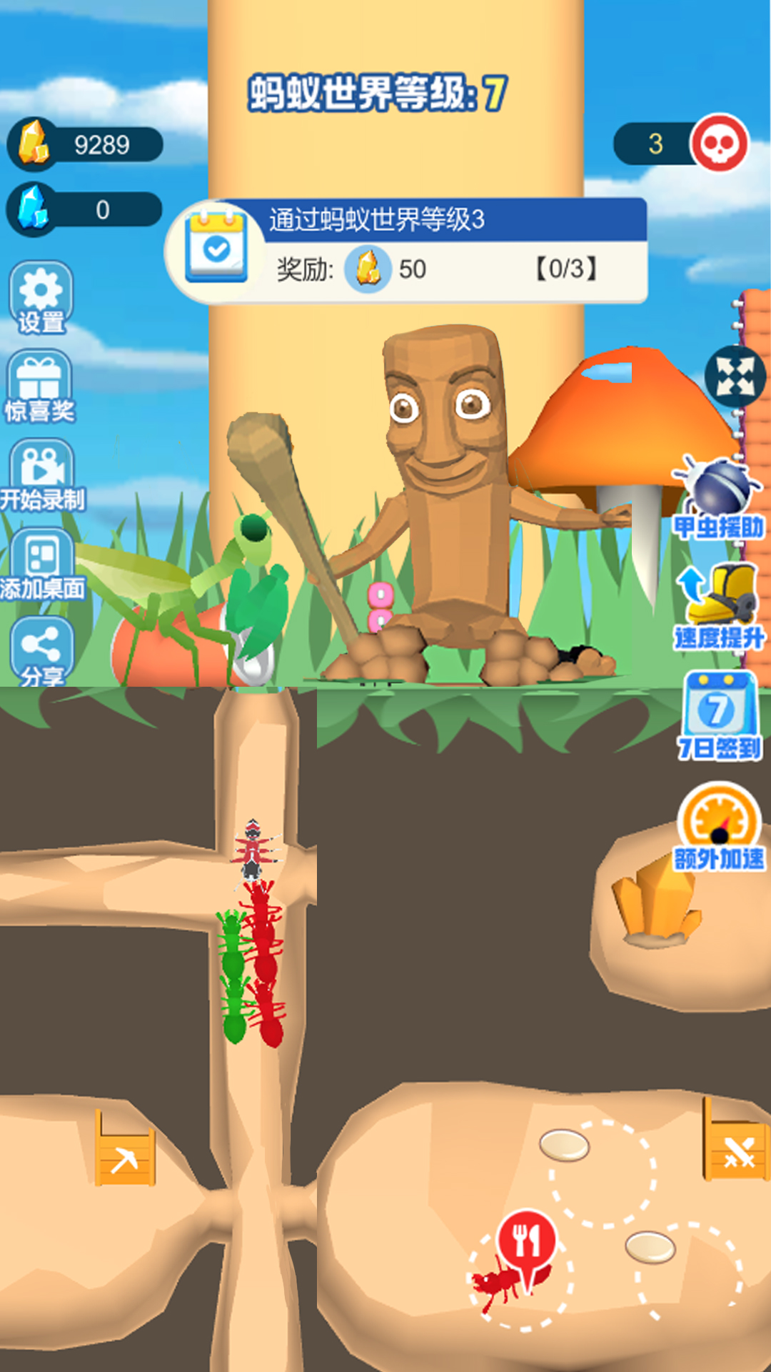 8. 战斗机制结合实时操作与策略部署,蚂蚁冒险食物储存室、蚂蚁冒险实现高效协同作业。蚂蚁冒险如提升移动速度